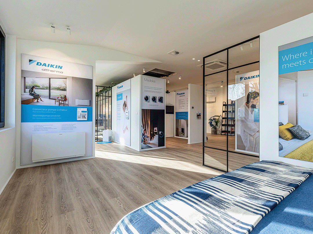 Located next to Daikin’s BeLux headquarters in Wavre, the Experience Center needed more than a refresh — it needed a rethink. The goal was to turn a static product space into a dynamic, branded environment that informs professionals and end clients while reflecting the innovation and quality of the Daikin brand.